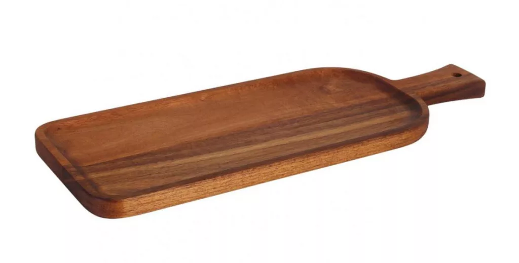 Acacia szögletes nyeles fa tálalódeszka 36,2x13,5x1,5 cm