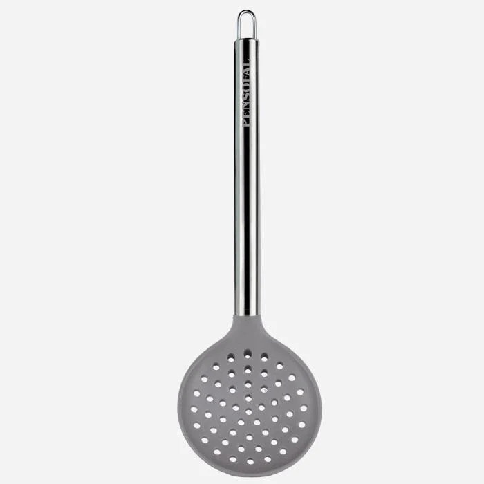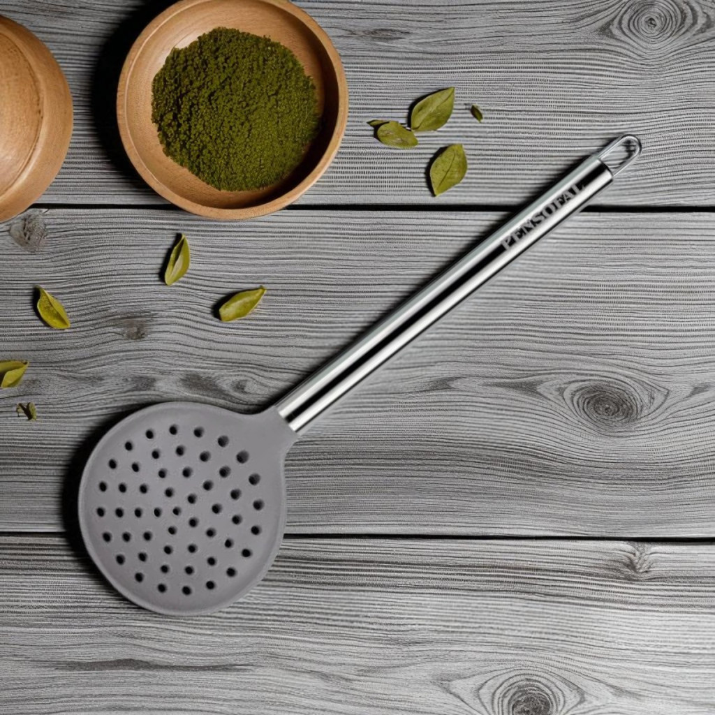 Az Academy Chef szűrőkanál szilikon fejjel ideális eszköz minden konyhába, ahol fontos a precíz és biztonságos szűrés. A perforált szilikon fej lehetővé teszi, hogy gyorsan és hatékonyan távolítsd el a folyadékot a tésztáról, zöldségről vagy más főtt ételekről. A Soft Titan bevonat nemcsak modern megjelenést kölcsönöz, hanem növeli az eszköz ellenállóságát a hővel és karcolásokkal szemben.
