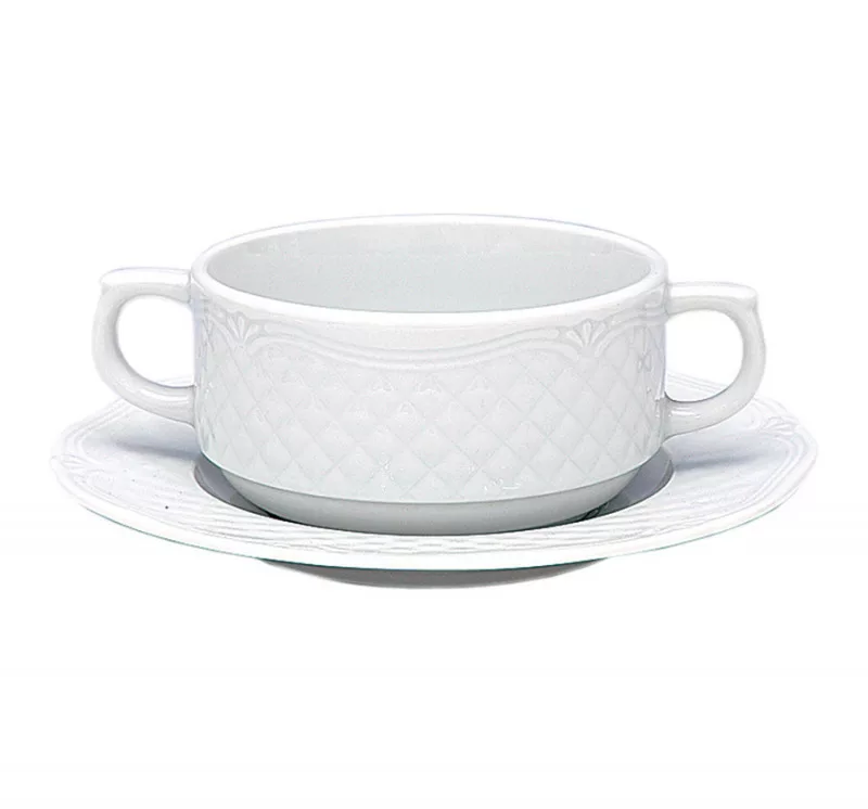 Az Afrodyta levesescsésze aljjal egy gyönyörű és praktikus kiegészítője lehet bármely konyhának vagy étkezőasztalnak. A csésze ideális méretű, 300 ml-es űrtartalmával tökéletesen alkalmas levesek és más meleg ételek felszolgálásához. A kemény porcelánból készült csésze nemcsak esztétikus megjelenést biztosít, hanem tartósságot és hosszú élettartamot is garantál. Az érdekes dombormű bájt és eleganciát kölcsönöz a csészének, így az étkezés még élvezetesebbé válik.