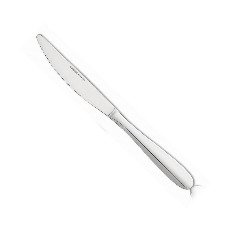 Tegye még stílusosabbá az étkezéseket az Aisha rozsdamentes acél evőkéssel! Ez a kiváló minőségű, 18/10-es rozsdamentes acélból készült kés garantálja a hosszú élettartamot és a tartósságot. Az egyszerű, letisztult formatervezés elegáns kiegészítője lehet bármilyen asztalkészletnek, legyen szó egy hétköznapi vacsoráról vagy egy különleges ünnepi alkalomról. A kényelmes, ergonomikus nyél biztos fogást nyújt, így az étel vágása könnyed és precíz lesz. Az Aisha evőkés ellenáll a rozsdásodásnak, így Ön hosszú ideig élvezheti a minőségét. Ez a minőségi evőeszköz Olaszországban készült, a precíz megmunkálásnak köszönhetően hosszú éveken át megbízható társ lesz az asztalon.