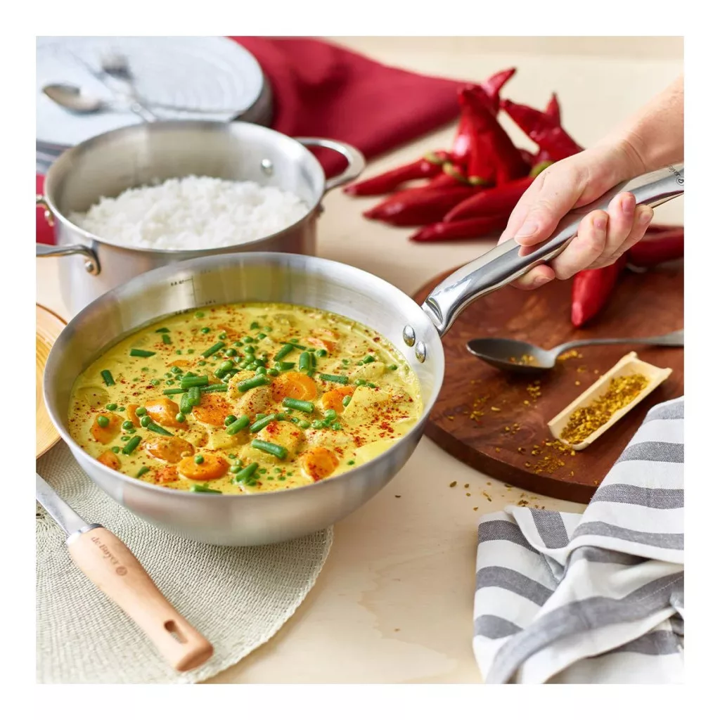A többrétegű felépítés biztosítja, hogy a serpenyő gyorsan elérje a kívánt hőmérsékletet és az étel elkészítése közben hosszabb ideig megtartja azt, így a hőszabályozás könnyebbé válik. Nincs szendvicsalap, így nem kell aggódnia a teljesítmény csökkenése miatt.