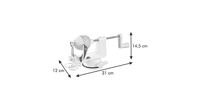 - Gyors és egyszerű használat: A tekerős mechanizmusnak köszönhetően könnyedén és gyorsan hámozhatja meg az almát, majd vékony szeletekre vághatja.