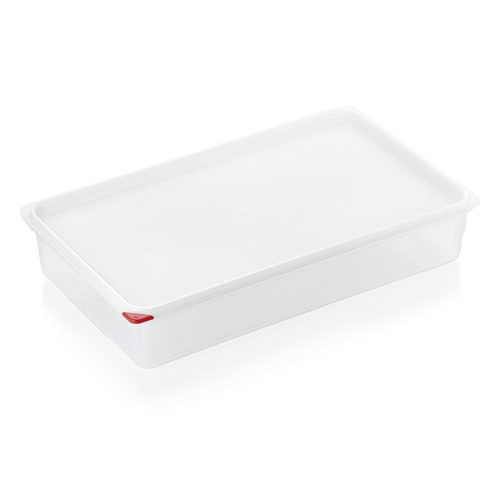 GN 1/1 edény, polipropilén GN edény, légmentesen záró fedél, 13 literes tárolóedény, professzionális ételtároló, nagykonyhai GN tároló, hőtűrő tárolóedény, Gastronorm szabvány edény