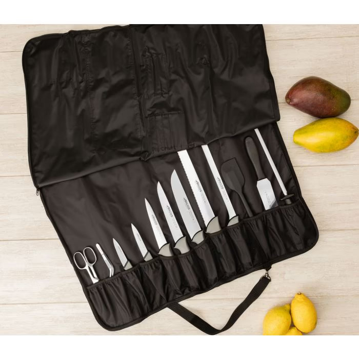 Az Arcos 12 részes késtáska professzionális megoldást kínál a kések biztonságos szállítására és tárolására. Ideális választás szakácsoknak, séfeknek, vendéglátósoknak és olyan otthoni szakácsoknak, akik gyakran szállítják vagy tárolják késeiket.