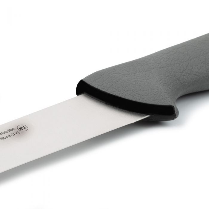 - 36 cm-es extra széles és flexibilis rozsdamentes acél penge NITRUM® bevonattal: A 36 cm-es extra hosszú penge ideális a nagyméretű húsok, sonkák, sültek, egészben sült szárnyasok szeleteléséhez. A penge széles kialakítása nagyobb felületet fed le egyetlen mozdulattal, ami gyorsabb és hatékonyabb szeletelést tesz lehetővé. A flexibilis penge könnyedén követi az élelmiszerek formáját, így precíz és egyenletes szeleteket lehet vágni. A NITRUM® bevonat egy egyedülálló eljárás, amely növeli a penge tartósságát, korrózióállóságát és élességmegtartását.