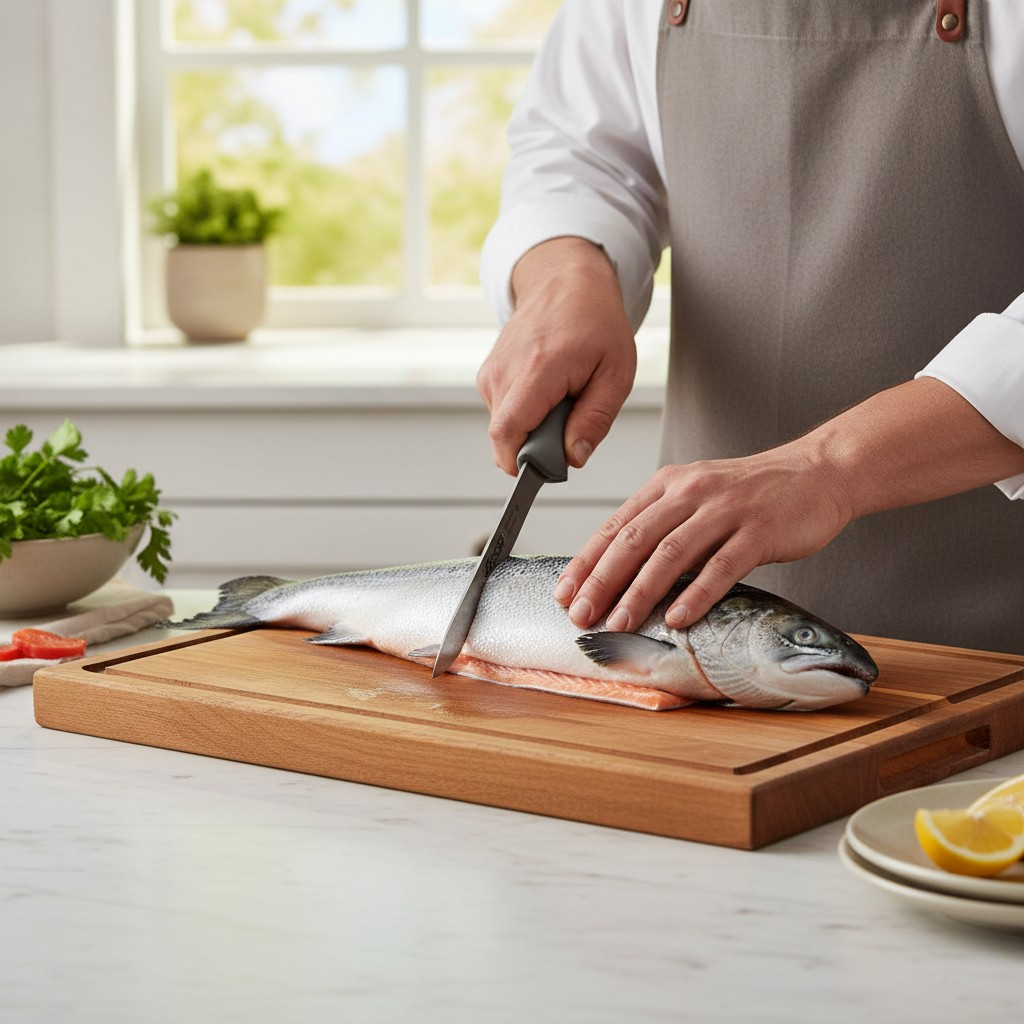 - 20 cm-es flexibilis penge: A 20 cm hosszú, flexibilis penge lehetővé teszi a halhús mentén történő precíz és könnyed vágást, a bőr és a csontok egyszerű eltávolítását. A penge hajlékonysága követi a hal természetes formáját, minimalizálva a húsveszteséget.