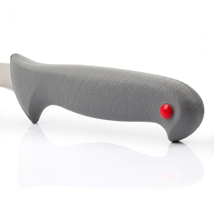 - Ergonomikus, csúszásmentes markolat: A gumibevonatú polipropilénből készült markolat biztos és kényelmes fogást nyújt, még nedves kézzel is. Az ergonomikus kialakítás csökkenti a kéz fáradtságát a hosszabb filézési munkák során.