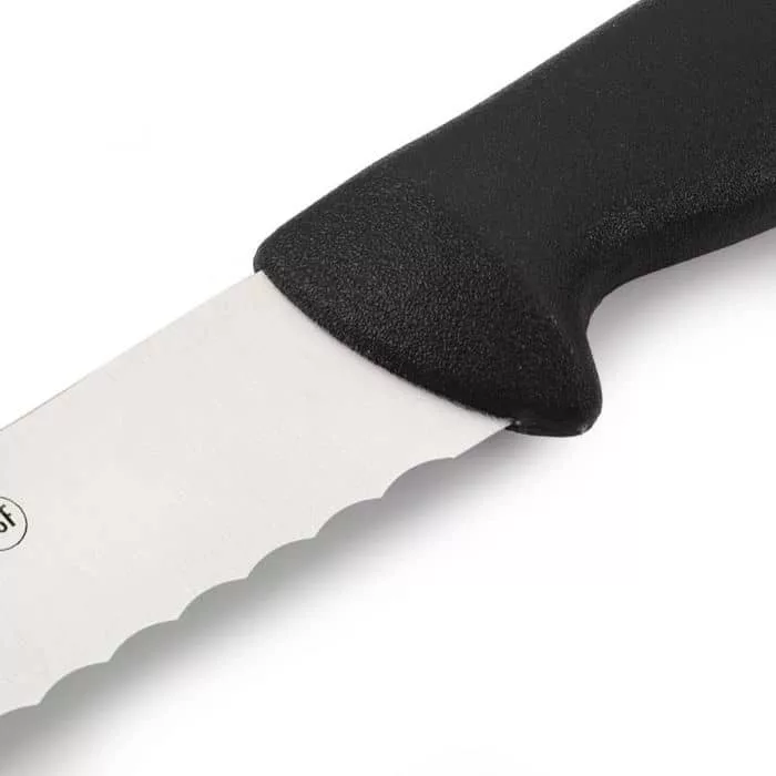 - Kenyér szeletelése: A kés könnyedén szeli a friss, ropogós kenyeret, a kérges cipót, a puha kalácsot és bármilyen más kenyeret.