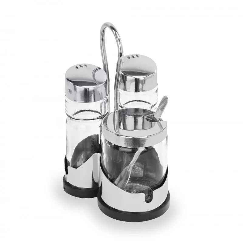 Ez a 3 részes asztali patika szett egy elegáns és praktikus kiegészítője lehet bármely étkezőasztalnak. Legyen szó étteremről, kávézóról vagy otthoni használatról, ez a szett segít az ételízesítők és a szalvéták rendszerezésében. A rozsdamentes acélból készült szett tartós és könnyen tisztítható.