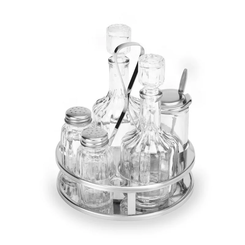 Keresőcímkék: asztali patika, 5 részes szett, sótartó, borsszóró, paprikaszósz tartó, olajtartó, ecettartó, éttermi kiegészítő, kávézó kellék, asztali rendszerező