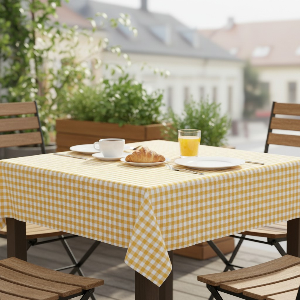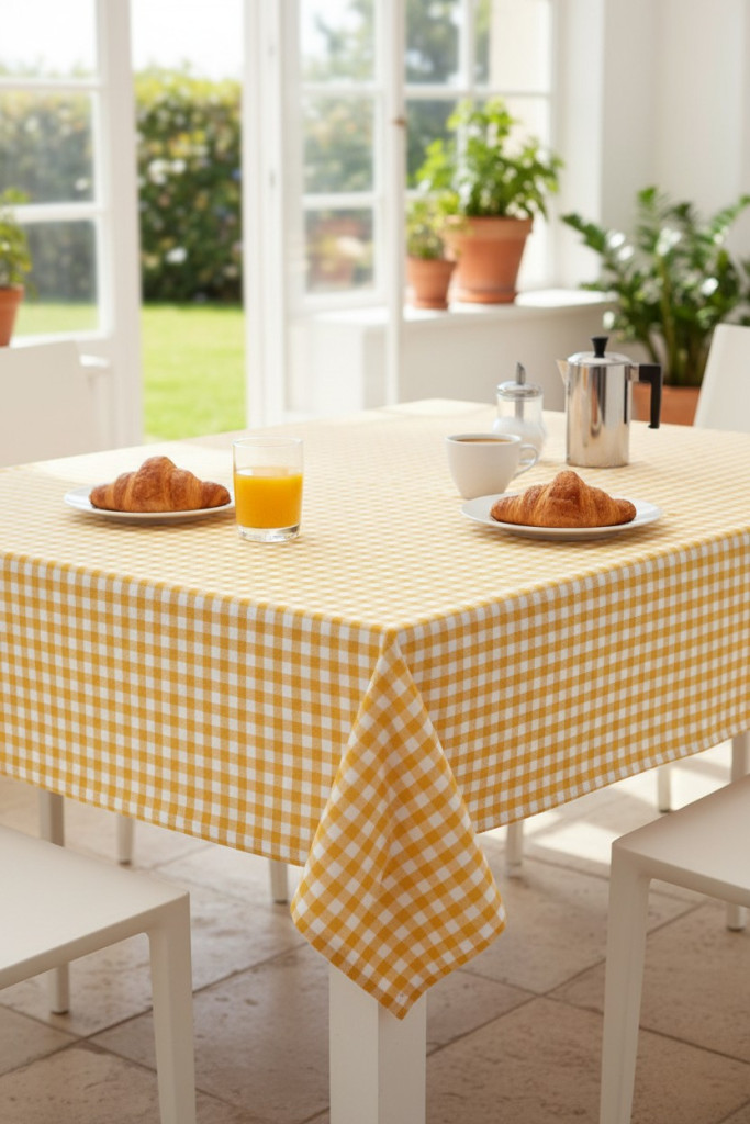 A 140x100 cm-es méret lehetővé teszi, hogy az asztalterítőt különböző méretű asztalokra helyezzük, és könnyedén illeszkedjen az adott térhez. A kockás minta és a sárga szín kombinációja könnyen kombinálható más színekkel és dekorációkkal, így lehetőséget ad a személyes stílus kifejezésére.