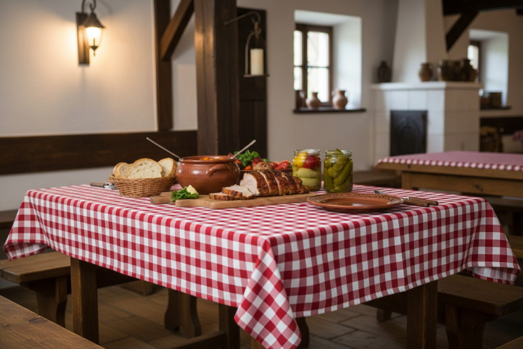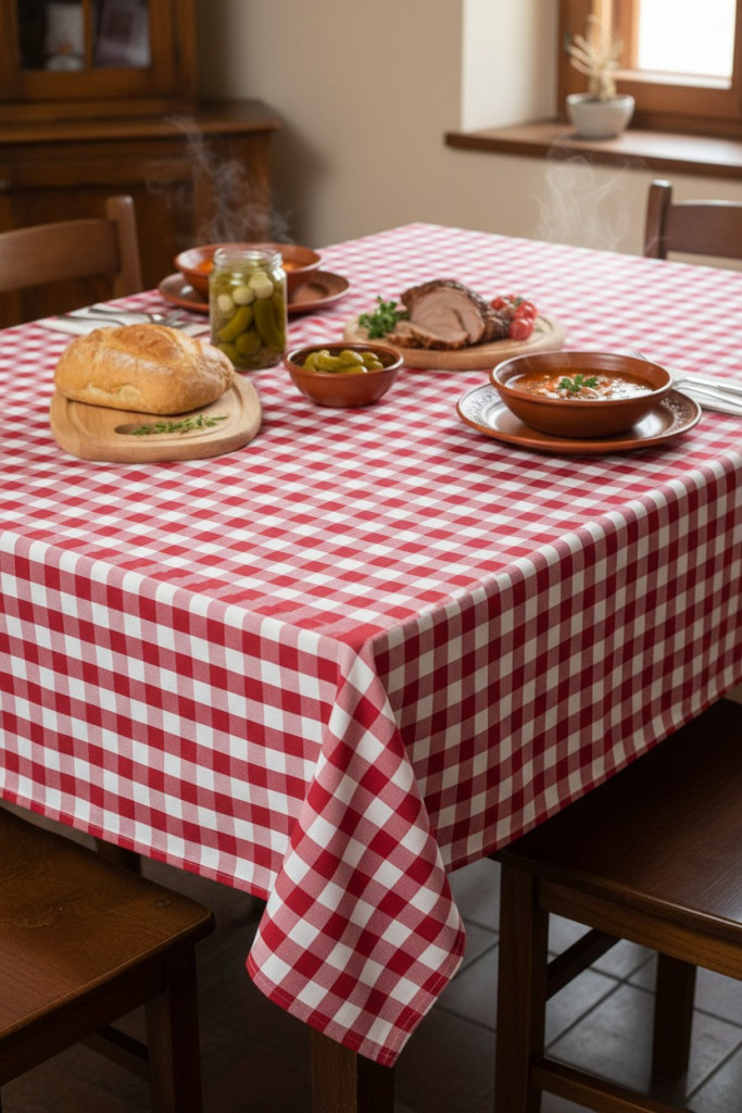 Az asztalterítő egy 140*180 cm-es méretű, piros kockás mintával díszített abrosz. Ez a termék tökéletes választás lehet otthoni vagy éttermi használatra egyaránt. Az asztalterítő anyaga magas minőségű, tartós és könnyen tisztítható anyagból készült, amely hosszú élettartamot biztosít. A piros kockás minta modern és elegáns megjelenést kölcsönöz az asztalnak, és könnyen kombinálható más dekorációs elemekkel. Az asztalterítő mérete ideális az asztalokhoz, és elegendő helyet biztosít az ételek és italok elhelyezéséhez. A termék könnyen felhelyezhető és levehető az asztalról, így könnyen tisztítható és karbantartható. Az asztalterítő praktikus és stílusos kiegészítője lehet bármely étkezőnek vagy konyhának, és kellemes hangulatot teremt az étkezések során.
