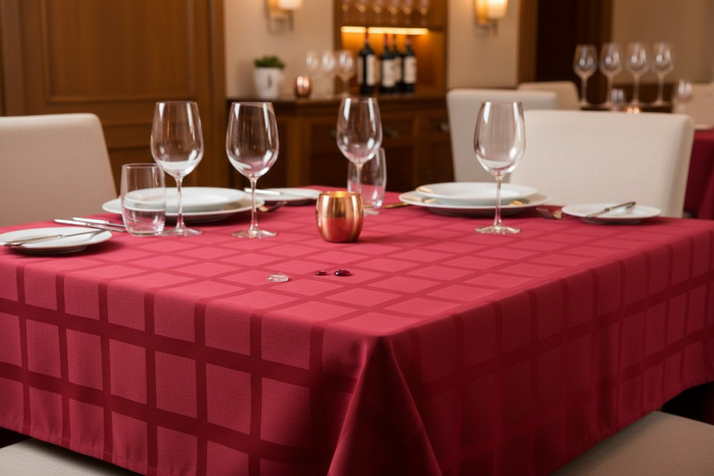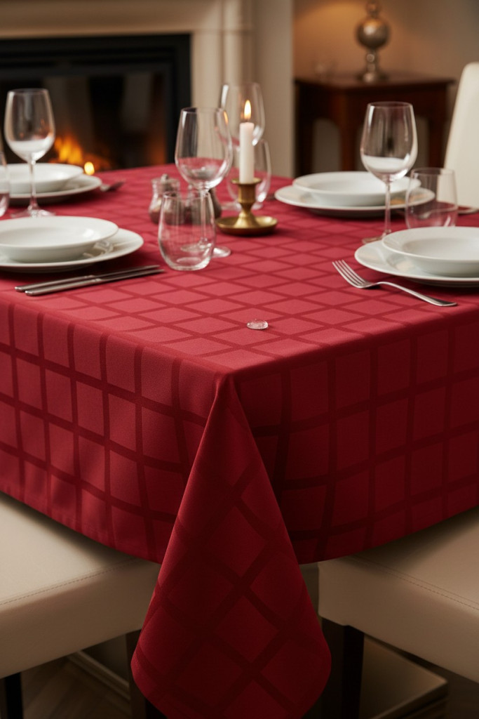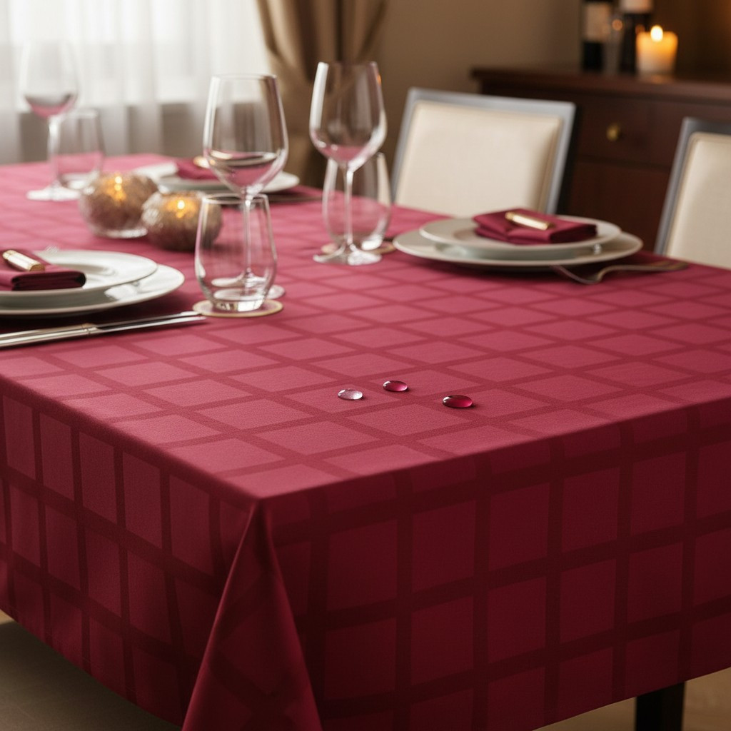Bordó Damaszt Asztalterítő Szennytaszító 140x180 cm - Elegáns Hangulat Nagyobb Asztalokhoz!