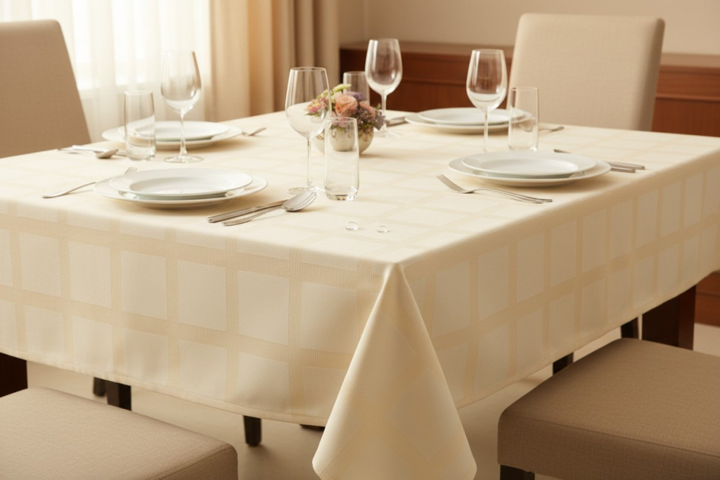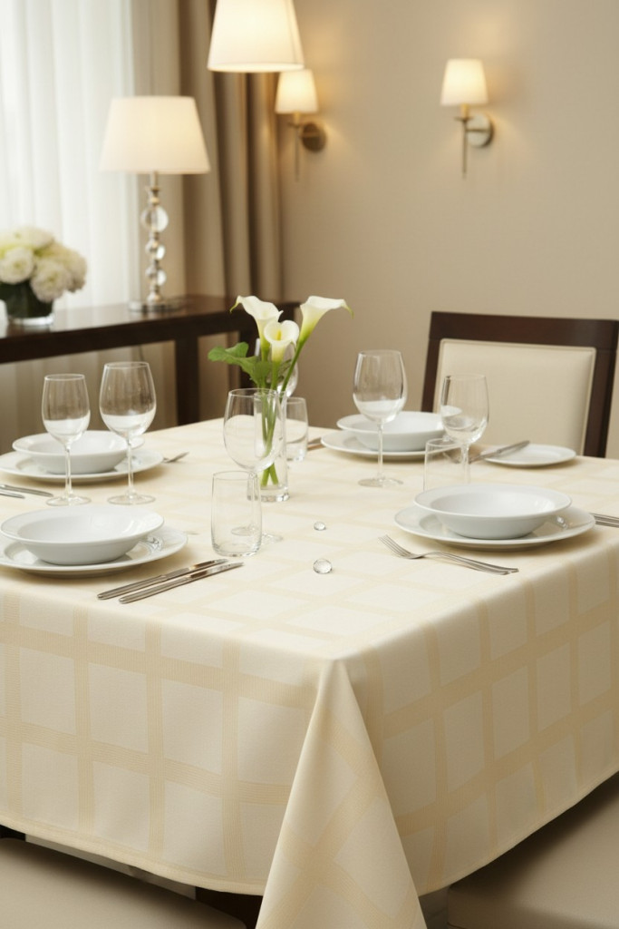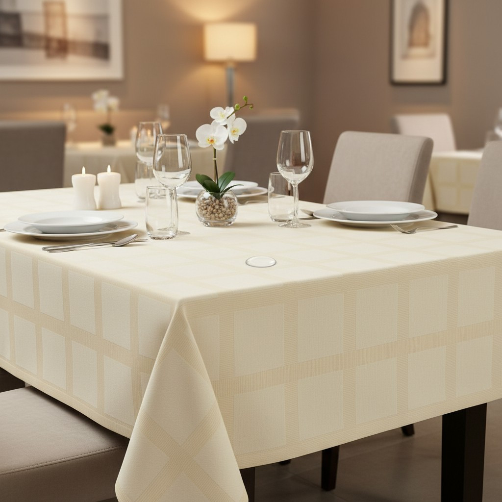 Ez a sokoldalú asztalterítő ideális mindennapi használatra, családi étkezésekhez, de különleges alkalmakra, vendégváráshoz is tökéletes választás. Az ekrü szín eleganciája ünnepi hangulatot teremt, ugyanakkor a hétköznapok során is stílusos megjelenést biztosít.