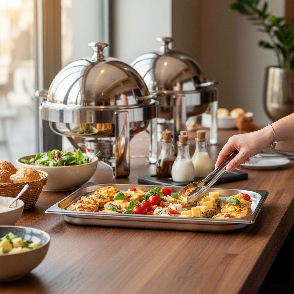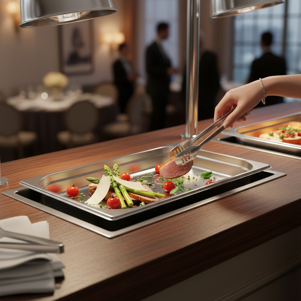 A Gastronorm 1/1 szabvány (kb. 53×32,5 cm) biztosítja a kompatibilitást minden professzionális vendéglátó rendszerrel, például melegentartó pultokkal, bain-marie rendszerekkel és hűtőpultokkal.