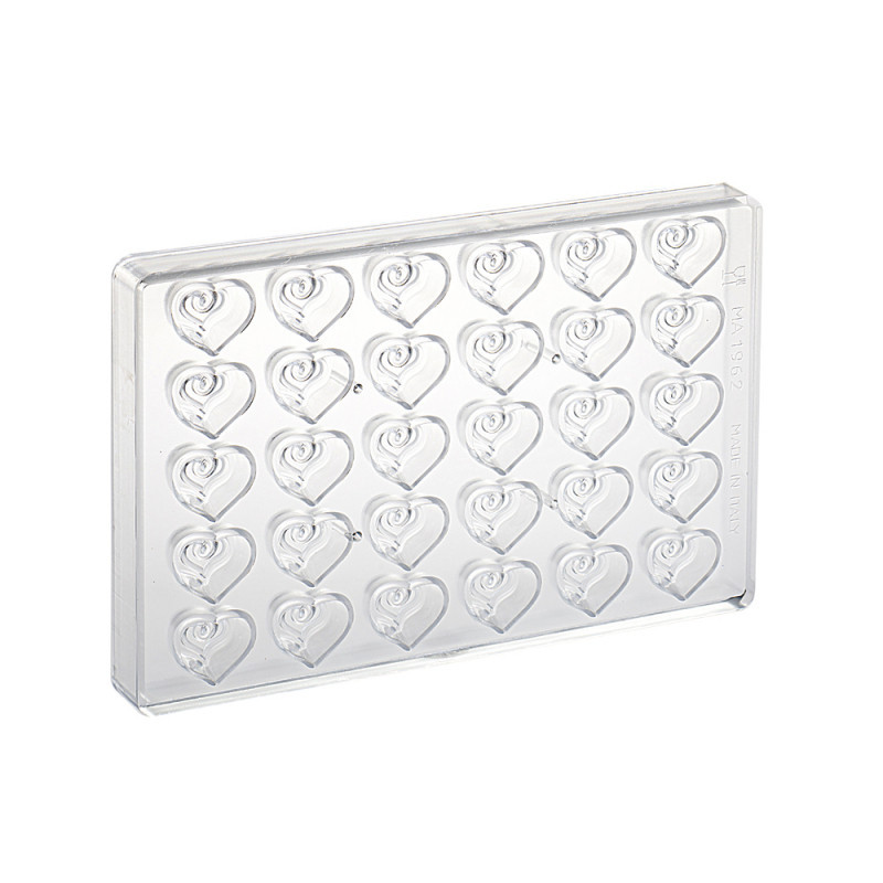 Bonbon Csokoládéforma (MA1962) – 275x175 mm, PolikarbonátEz a polikarbonát csokoládéforma kifejezetten bonbonok készítésére lett tervezve. A 275x175 mm méret lehetővé teszi, hogy különböző ízletes és kreatív bonbonokat készítsen. A polikarbonát anyag biztosítja a csokoládé egyenletes hűtését, és segít megőrizni a bonbonok sima felületét és fényét. Könnyen tisztítható, így ideális választás cukrászok és otthoni édességkedvelők számára.Jellemzők: Anyag: Polikarbonát Méret: 275x175 mm Felhasználás: Tökéletes csokoládé bonbonok készítéséhezSpecifikációk: Típus: Csokoládéforma Anyag: Polikarbonát Tisztítás: Mosogatógépben mosható, tartós és könnyen tisztíthatóKeresőcímkék: bonbon csokoládéforma, csokoládé készítés, polikarbonát forma, MA1962Az olasz Martellato a piacon elérhető legjobb minőségű alapanyagból, Olaszországban gyártja csokoládé polikarbonát öntőformáit. Az alapanyag minősége nemcsak a termék tartósságát befolyásolja, hanem a csokoládé fényességéért is felelős. A Martellato polikarbonát formák rendeltetésszerű használat esetén akár 25 évig is használhatóak, mosogatógépben moshatóak és mélyhűtőbe is tehetőek. Felületük tökéletesen sima és egyenletes, ennek köszönhetően a csokoládé felülete is tökéletesen sima lesz. A formában lévő apró pici lyukacskák révén a kész csokoládé vagy figura könnyedén kifordítható (nem alakul ki vákuum). A polikarbonát formák belső felülete precízen kidolgozott és részletes mintákat tartalmaz, amelyek átadják a bonbonoknak egyedülálló és csodálatos megjelenésüket.