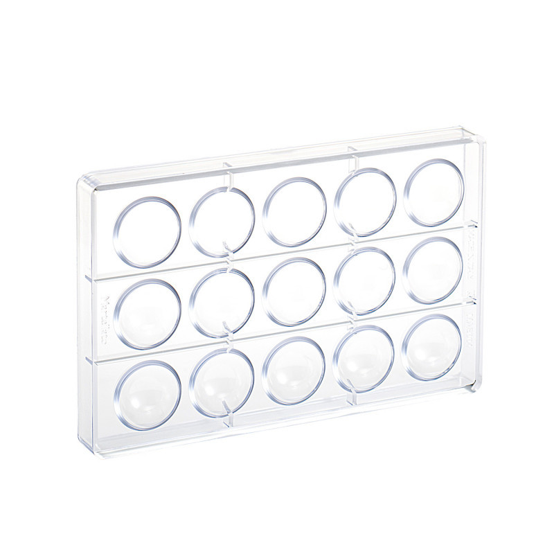 Bonbon Félgömb Csokoládéforma (MA5004) – Polikarbonát, 275x175 mmEz a csokoládéforma polikarbonátból készült, amely biztosítja a tartósságot és a könnyű használatot. A félgömb formájú bonbonok elkészítésére tervezett forma tökéletes sima felületet biztosít, és segít az egyenletes alak megőrzésében. A 275x175 mm méret lehetővé teszi több bonbon készítését egyidejűleg, ideális cukrászok és csokoládékészítők számára.Jellemzők: Anyag: Polikarbonát Méret: 275x175 mm Forma: Félgömb Tisztítás: Könnyen tisztítható és mosogatógépben mosható. Specifikációk: Méret: 275x175 mm Anyag: Polikarbonát Felhasználás: Félgömb alakú bonbonok készítéséhezKeresőcímkék: bonbon forma, félgömb csokoládéforma, MA5004 csokoládé forma, polikarbonát bonbon forma, professzionális cukrász eszközAz olasz Martellato a piacon elérhető legjobb minőségű alapanyagból, Olaszországban gyártja csokoládé polikarbonát öntőformáit. Az alapanyag minősége nemcsak a termék tartósságát befolyásolja, hanem a csokoládé fényességéért is felelős. A Martellato polikarbonát formák rendeltetésszerű használat esetén akár 25 évig is használhatóak, mosogatógépben moshatóak és mélyhűtőbe is tehetőek. Felületük tökéletesen sima és egyenletes, ennek köszönhetően a csokoládé felülete is tökéletesen sima lesz. A formában lévő apró pici lyukacskák révén a kész csokoládé vagy figura könnyedén kifordítható (nem alakul ki vákuum). A polikarbonát formák belső felülete precízen kidolgozott és részletes mintákat tartalmaz, amelyek átadják a bonbonoknak egyedülálló és csodálatos megjelenésüket.