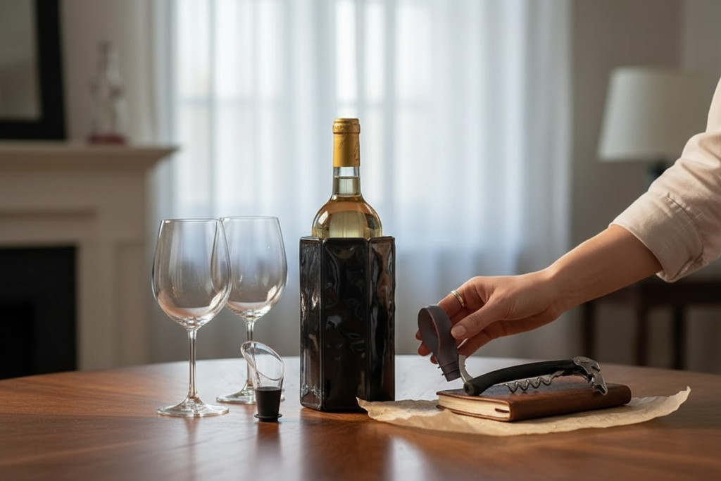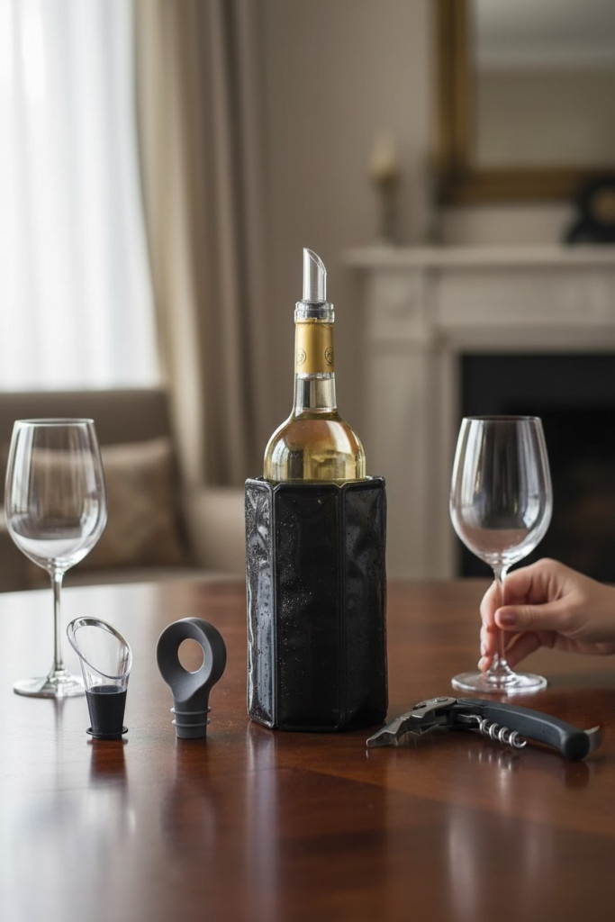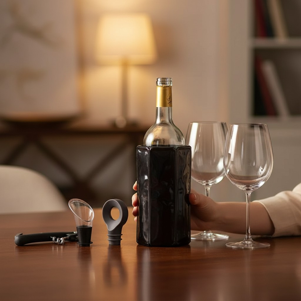 A borhűtő hüvelyt használat előtt hűtőszekrénybe kell helyezni, majd a palackra húzva hosszabb ideig hidegen tartja a bort. A kiöntő megakadályozza a bor csepegését, a dugó pedig segít megőrizni a bor aromáját felbontás után.