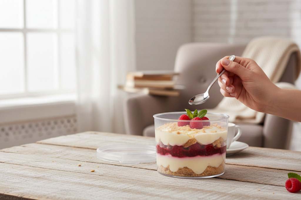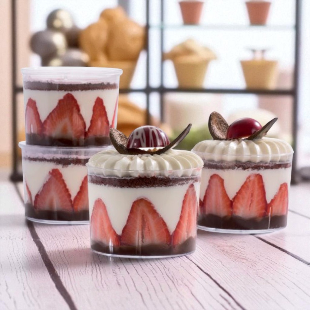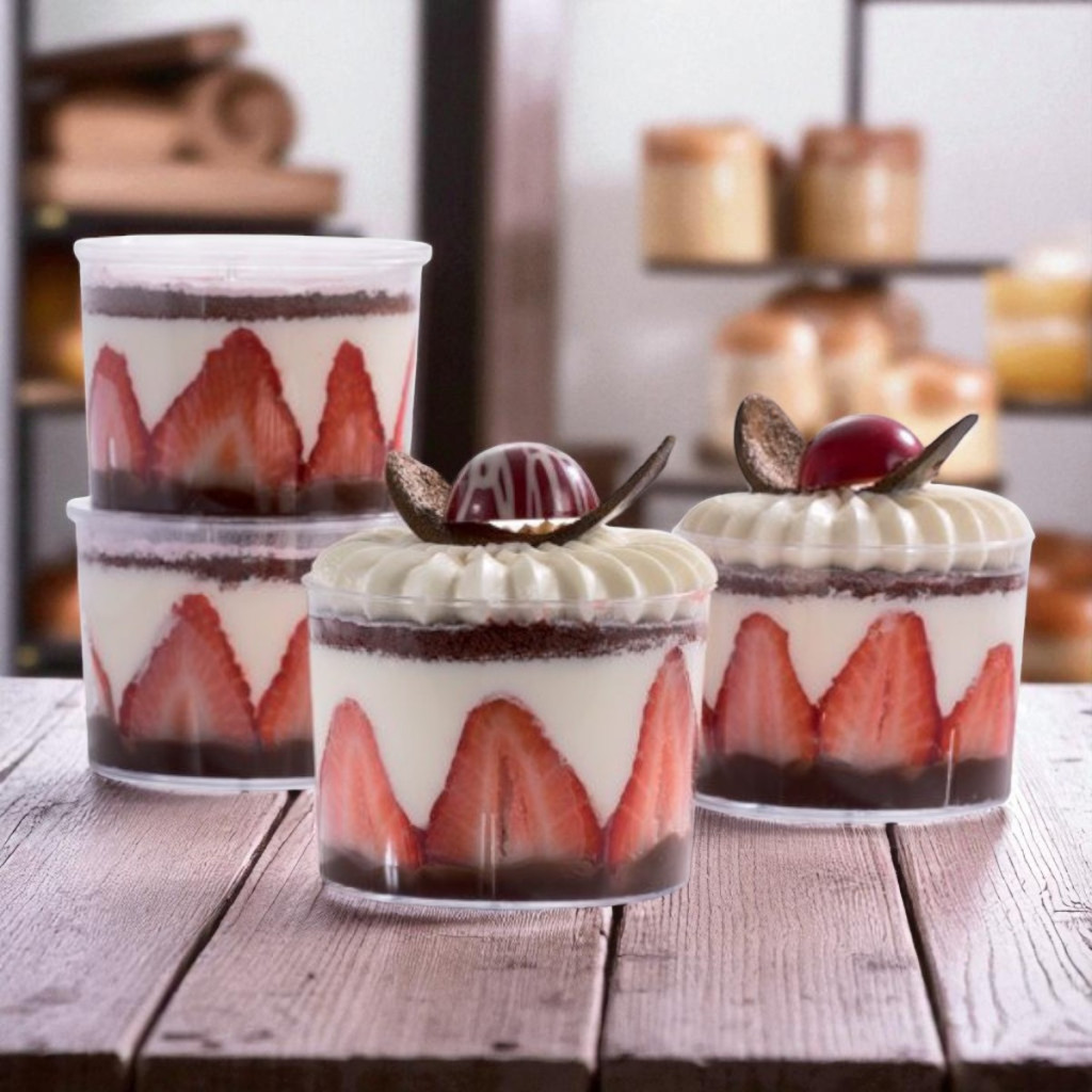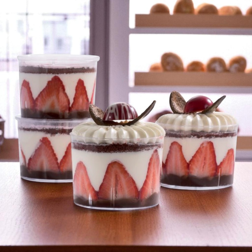 - Átlátszó design: kiemeli a desszertek rétegeit.