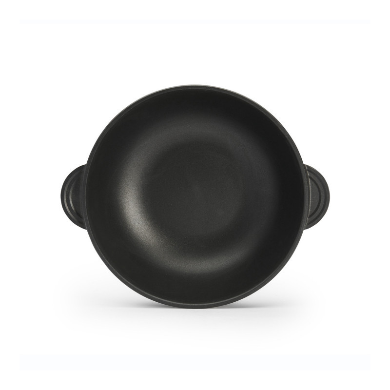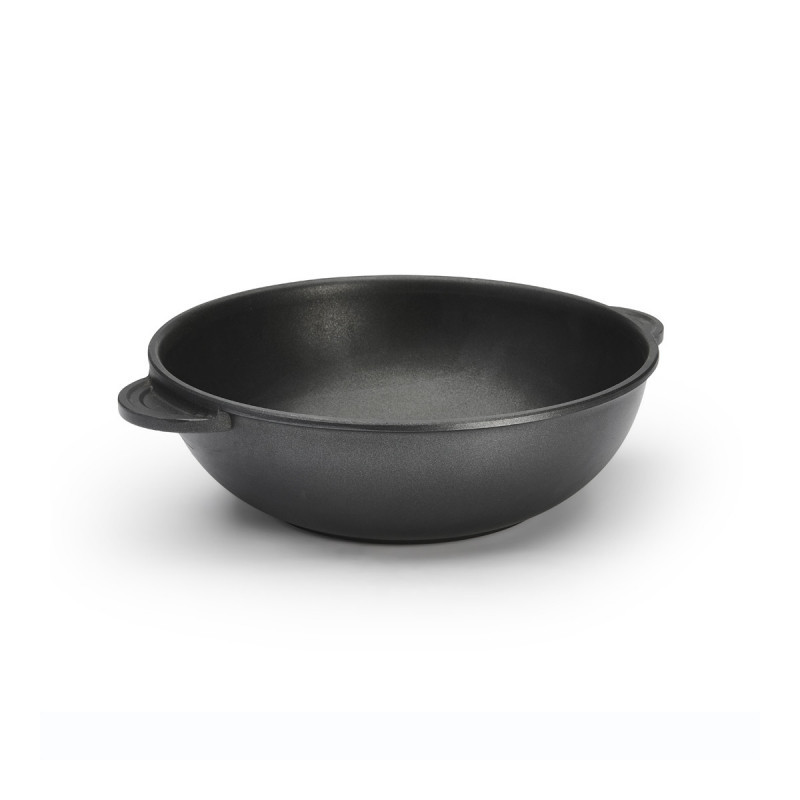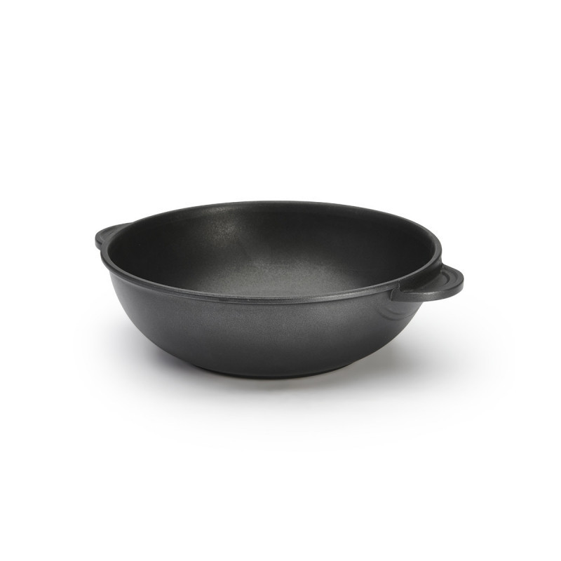Ez a sokoldalú wok ideális választás hosszú, alacsony vagy mérsékelt hőmérsékletű ételek, például finom halak, zöldségek, hüvelyesek és gabonák elkészítéséhez anélkül, hogy elszíneződnének. Kiválóan alkalmas pörköltek párolására, készételek felmelegítésére és szószok sűrítésére is, anélkül, hogy befolyásolná az ízeket vagy a színeket. A wok két tömegbe öntött fogantyúval rendelkezik, amelyek törhetetlenek és biztosítják az edény egyszerű kezelését (figyelem: a fogantyúk felforrósodhatnak!). A wok minden főzőlap típussal kompatibilis, beleértve az indukciót is, és sütőben is használható.