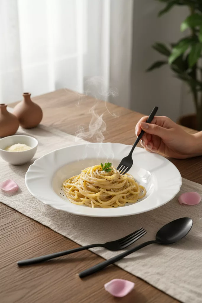 Az Cadix 22 cm-es mélytányér az a mindenes, amitől az étel jól mutat, a tálalás stílusos, és a konyhai élet egyszerűbb. GasztroZoli szerint: ha ez a tányér beszélni tudna, minden tésztaszálra külön dicséretet adna.