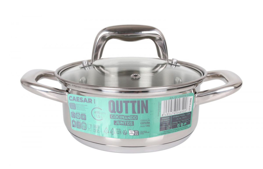 A Caesar 1,5 literes indukciós lábas egy praktikus, jól használható rozsdamentes edény, amely ideális mindennapi főzési feladatokhoz. A 16 cm-es átmérő tökéletes kisebb adagok elkészítéséhez, amikor nem akarsz nagy edényt melegíteni feleslegesen.