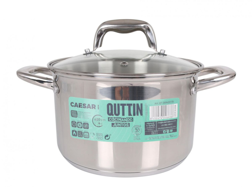 A Caesar 4 literes indukciós fazék ideális választás családi főzésekhez, nagyobb adagok elkészítéséhez vagy akár vendéglátóhelyi használatra is. A 20 cm-es átmérő és a magas falú kialakítás kényelmes főzési teret biztosít, csökkentve a kifutás és fröccsenés esélyét.