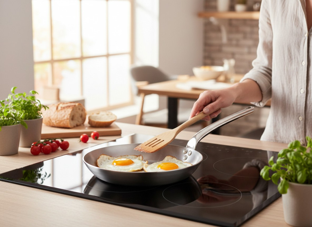 • Gyors hőreagálás: A serpenyő gyorsan melegszik fel és hűl le, ami precíz hőszabályozást tesz lehetővé a főzés során.
