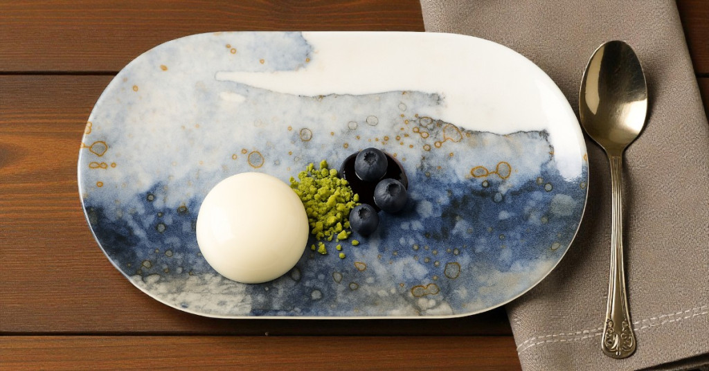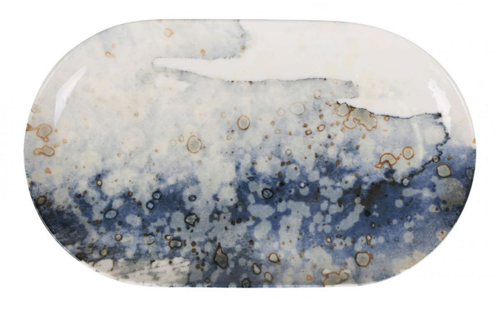 Catay kék-fehér márványhatású porcelán ovális tányér, 30x17.5x2.8cm