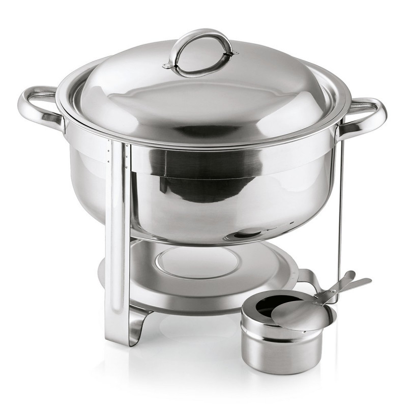 A Chafing kerek egy 7,5 literes, rozsdamentes acélból készült termék, amely tökéletes választás lehet az éttermek, szállodák, büfék vagy akár otthoni rendezvények számára. Ez a kerek chafing tartály ideális a meleg ételek tárolására és szervírozására, hogy azok hosszabb ideig melegen maradjanak.A rozsdamentes acél anyagból készült kialakításnak köszönhetően a chafing kerek rendkívül tartós és ellenálló. Ez a tulajdonság biztosítja, hogy hosszú éveken át használható legyen, és ellenálljon a mindennapos használat során jelentkező kopásnak és sérüléseknek. Emellett a rozsdamentes acél könnyen tisztítható, így könnyen fenntartható a higiénikus környezet.A 7,5 literes űrtartalom lehetővé teszi, hogy ebben a chafing kerekben nagyobb mennyiségű ételt tárolhassunk és szervírozhassunk egyszerre. Ez különösen előnyös lehet nagyobb rendezvényeken vagy éttermi környezetben, ahol gyakran szükség van nagyobb adagokra.A kerek forma elegáns megjelenést kölcsönöz a chafing tartálynak, amely tökéletesen illeszkedik bármilyen asztali díszítéshez vagy eseményhez. A kerek forma továbbá lehetővé teszi a könnyű hozzáférést az ételhez, így könnyen tálalható és fogyasztható.A chafing kerekhez tartozik egy fedő, amely segít megőrizni az étel hőmérsékletét és megakadályozza a szennyeződéseket. A fedő könnyen fel- és levéhető, így egyszerűen ellenőrizhető az étel állapota és könnyen újratölthető.Összességében a Chafing kerek, 7,5 literes, rozsdamentes acélból készült termék ideális választás lehet az éttermek, szállodák vagy otthoni rendezvények számára. Tartós és könnyen tisztítható anyagának köszönhetően hosszú éveken át használható, míg a nagy űrtartalom lehetővé teszi a nagyobb mennyiségű étel tárolását és szervírozását. Az elegáns kerek forma pedig tökéletesen illeszkedik bármilyen asztali díszítéshez és könnyű hozzáférést biztosít az ételhez.
