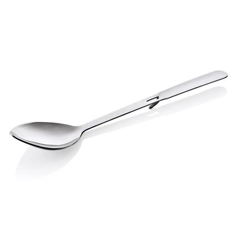 A lapos, széles kanálfej és az enyhén élesített szélek lehetővé teszik a pontos és hatékony ételfelvételt, így az étel nem esik szét tálalás közben, és a szervírozás mindig esztétikus marad.