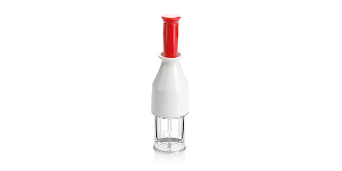 - Gyors és egyszerű használat: A speciális kialakítású pengének és a tartónak köszönhetően könnyedén és gyorsan szeletelheti fel a paradicsomokat.