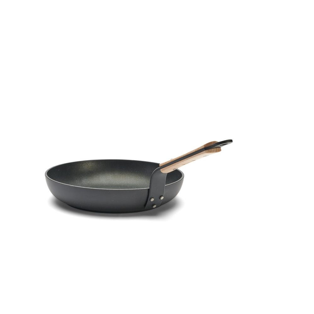 24cm-es tapadásmentes serpenyő kovácsolt alumíniumból, francia stílusú bükkfa fogantyúval. Kíméletes főzéshez és melegítéshez.
