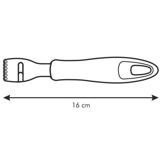 A Citromhéj kaparó egy praktikus és hatékony eszköz, amely segít a citromhéj könnyed eltávolításában. A kaparó hossza 16 cm, így kényelmesen használható és könnyen irányítható. A Presto márka garantálja a minőséget és a tartósságot.Ez a kaparó kiválóan alkalmas a citromhéj finom reszelésére vagy kaparására, amelyet számos étel és ital ízesítéséhez használhatunk. A citromhéj intenzív ízt és frissességet ad az ételeknek, és a kaparóval könnyedén és gyorsan kinyerhetjük a héjat anélkül, hogy a gyümölcs belsejét megsértenénk.A kaparó éles és tartós rozsdamentes acél pengével rendelkezik, amely könnyedén átvágja a citromhéjat anélkül, hogy elrontaná vagy megsértené azt. A pengének köszönhetően a héj könnyedén leválik a gyümölcstől, így nem maradnak benne felesleges részek vagy szálak.A kaparó ergonomikus fogantyúval rendelkezik, amely kényelmes fogást biztosít. A fogantyú anyaga csúszásmentes, így biztonságosan és stabilan tarthatjuk a kezünkben. A kaparó könnyű és kompakt kialakításának köszönhetően könnyedén tárolható a konyhában, és könnyen hozzáférhető, amikor szükség van rá.A Citromhéj kaparó használata egyszerű és gyors. Csak helyezze a pengét a citromhéjra, és finoman húzza végig a héjon. A pengének köszönhetően a héj könnyedén leválik, és a kaparóval könnyedén összegyűjthető vagy közvetlenül az ételre vagy italra szórható.Ez a Citromhéj kaparó ideális választás minden otthoni szakácsnak vagy bármely étteremnek, amely gyorsan és hatékonyan szeretné elkészíteni az ételeket és italokat. A kaparó minőségi anyagokból készült, így hosszú élettartammal rendelkezik, és hosszú távon is megbízhatóan működik.Tegye könnyebbé a citromhéj eltávolítását a Citromhéj kaparóval, és élvezze az ízletes és friss ételeket és italokat, amelyeket könnyedén elkészíthet vele.