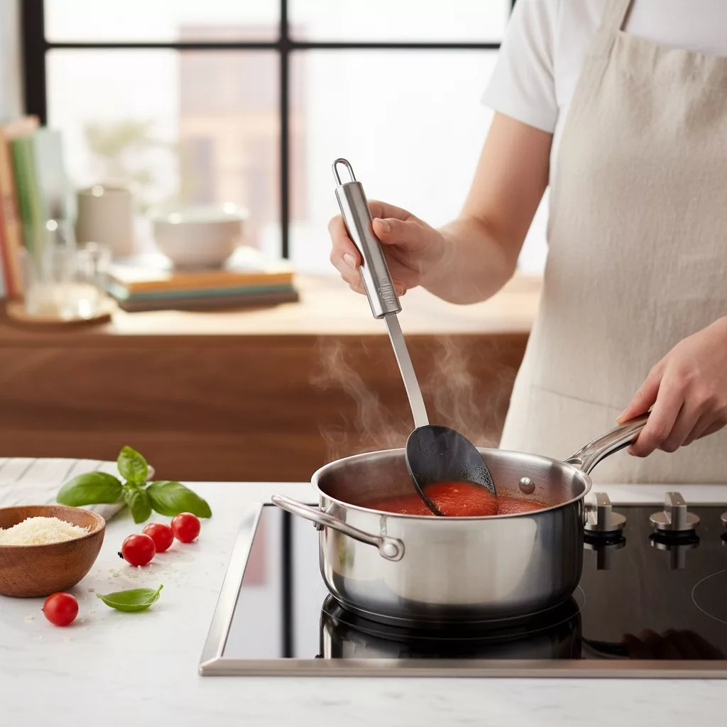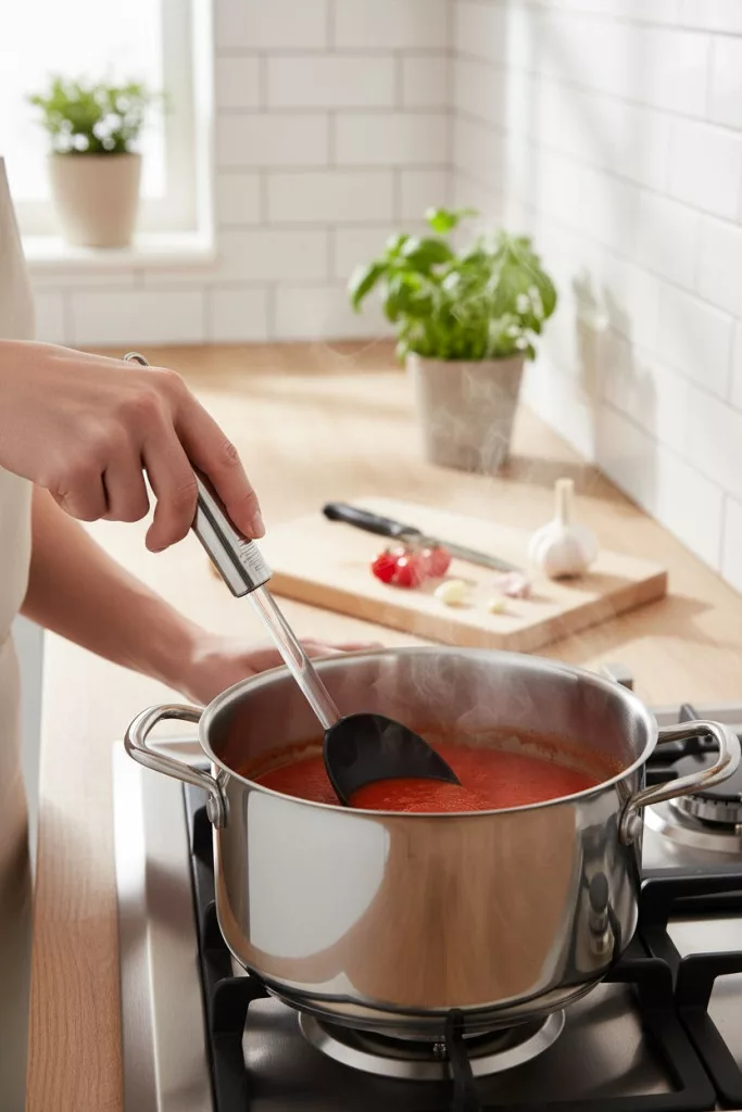 - Hosszú nyél: mély edényekhez ideális