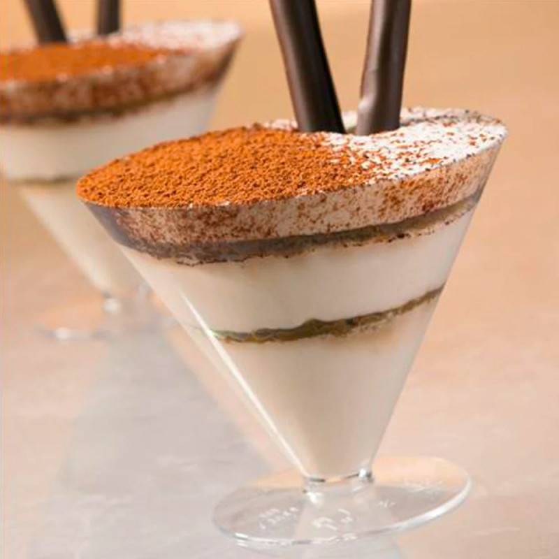 - Modern design: kúp alakú forma, amely kiemeli a desszert rétegeit.