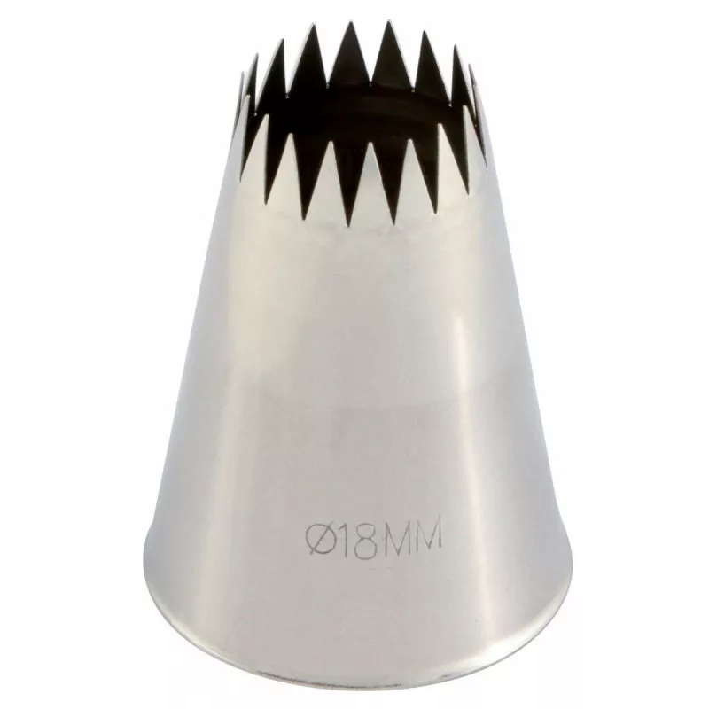 Csillagcső, 18 mm – Francia Csillag, Rozsdamentes AcélTegye különlegessé cukrászati alkotásait az 18 mm-es francia csillagcsővel. Rozsdamentes acélból készült, amely garantálja a tartósságot és a hosszú élettartamot. Az 18 mm-es csillagcső tökéletes eszköz nagyobb díszítésekhez, gazdag krémek és díszes minták létrehozásához tortákon, süteményeken és egyéb édességeken. A francia csillag forma lehetővé teszi a professzionális megjelenést minden desszertnél.Méretek és Súly: Cső átmérő: 18 mmAnyagok és Kialakítás: Anyag: Rozsdamentes acél, biztosítva a tartósságot és a hosszú élettartamot Kialakítás: Francia csillag forma a látványos és precíziós díszítéshezFőbb Jellemzők: Tartósság: Rozsdamentes acél anyag, amely ellenáll a gyakori használatnak és magas hőmérsékletnek. Látványos Díszítés: Ideális nagyobb krémek, torták és sütemények díszítéséhez. Könnyű Tisztítás: Egyszerűen tisztítható kézi mosással.Felhasználási Javaslatok: Ideális alkalmazások: Tökéletes torták, sütemények, krémek és egyéb édességek gazdag díszítéséhez. Karbantartás: Rendszeres tisztítás és szárítás javasolt, hogy megőrizze a cső éles szélét és formáját.Specifikációk: Cső átmérő: 18 mm Kialakítás: Francia csillag Anyag: Rozsdamentes acélKeresőcímkék: csillagcső, francia csillagcső, 18 mm csillagcső, rozsdamentes acél csillagcső, cukrászati díszítő cső, torta díszítő cső
