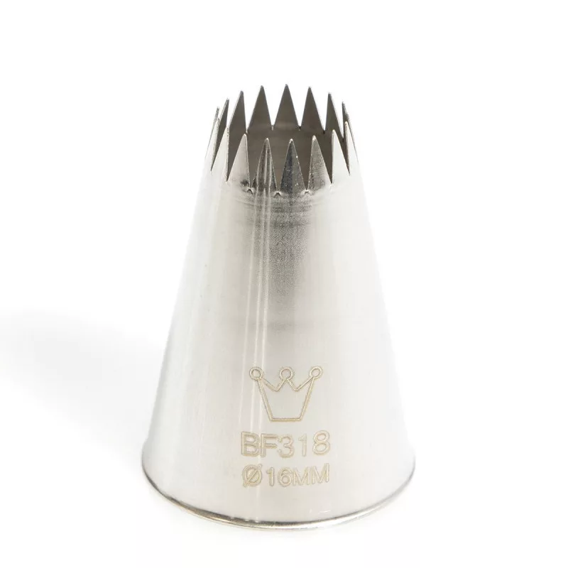 Rozsdamentes polirozott acél, kerek habcső, táskához vagy habzsákhoz, 2-24 mm-es kimeneti lyuk átmérővel. Torták, sütemények, kekszek habbal, krémmel való dekorálására használt eszköz. A névben szereplő átmérő a kimeneti nyílásra vonatkozik. Élelmiszerbiztonságos termék. Megfelelőségi nyilatkozattal rendelkező cukrászati termék. Olasz gyártású cukrászati eszköz. Termék méret: nagy átmérő 30 mm, magasság 50 mm. Első használat előtt alaposan mossa el. Mosogatógépben mosható.