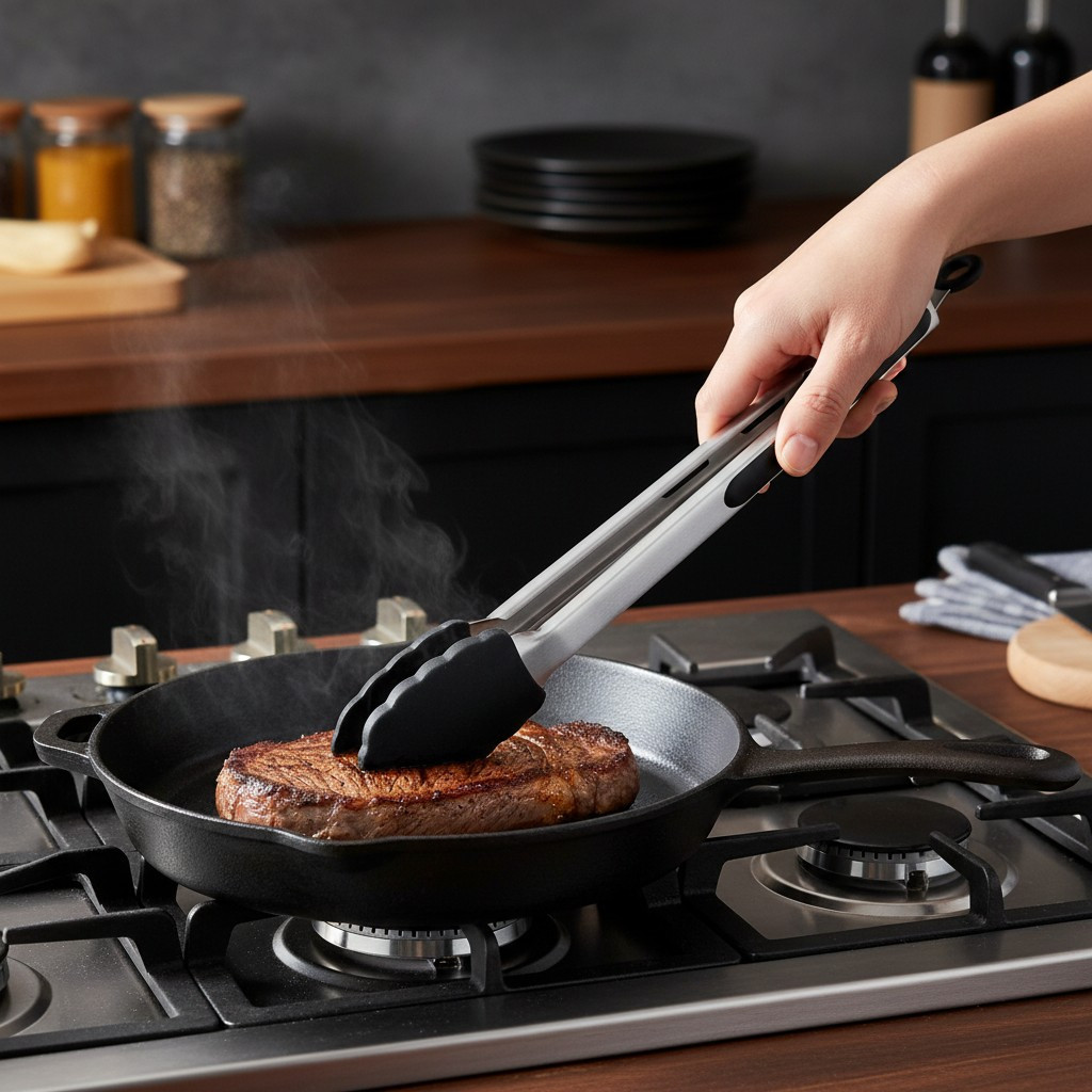 A szilikon betét nem karcol, nem csúszik, és megfelelő rugalmasságot biztosít húsok, zöldségek, tészták vagy akár sütemények megfogásához. A csipesz ergonomikus kialakítása kényelmes fogást ad, így hosszabb használat során sem fárasztó.