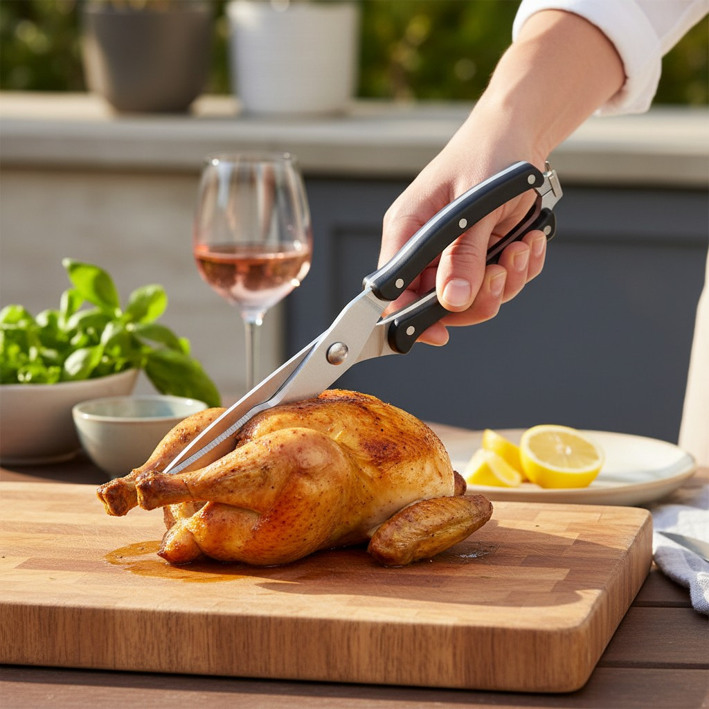 Ez a strapabíró szárnyasolló nem csak csirkéhez használható! Kiválóan alkalmas kacsához, pulykához vagy más szárnyasokhoz is. A hengerléssel edzett pengék erejének köszönhetően akár kisebb csontok átvágása sem jelenthet problémát. A kényelmes fogású nyél biztosítja a biztonságos és precíz munkavégzést.