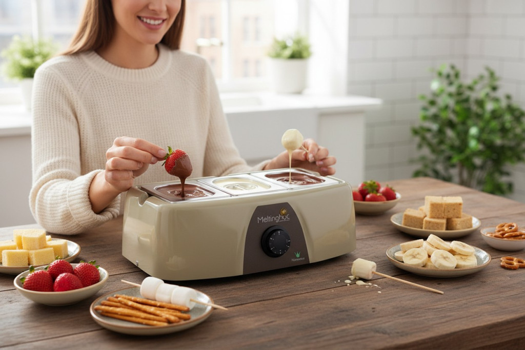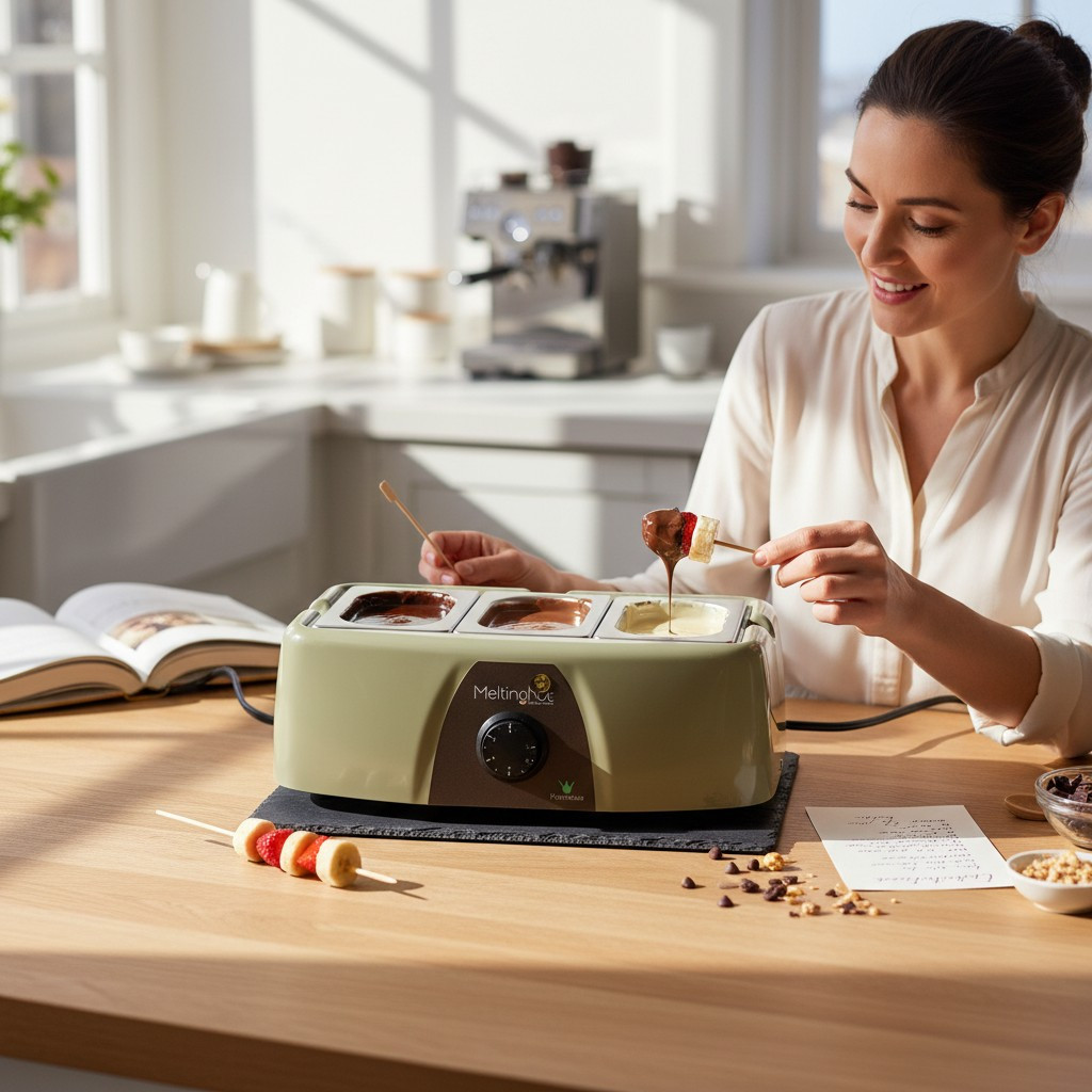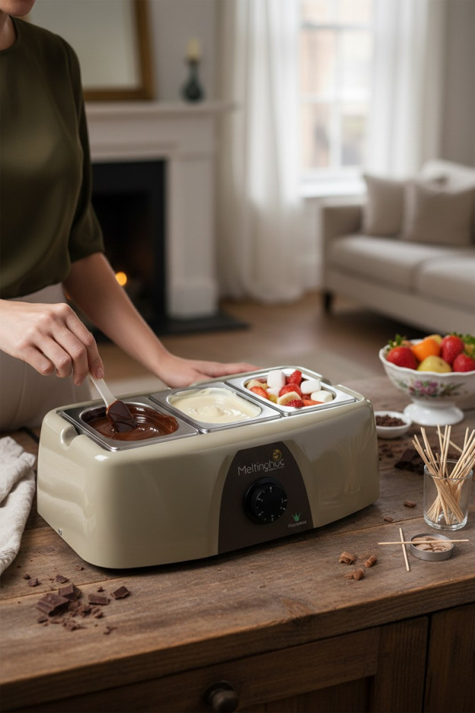 A Meltinchoc analóg csokoládé olvasztó egy nélkülözhetetlen eszköz mindazok számára, akik csokoládéval dolgoznak, legyen szó otthoni felhasználásról vagy professzionális cukrászatról. A három különálló tartállyal rendelkező készülék lehetővé teszi különböző típusú csokoládék egyidejű olvasztását és temperálását.