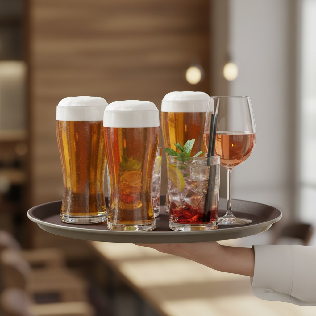 Csúszásmentes tálca, kerek, 35 cm, barna, polipropilén
