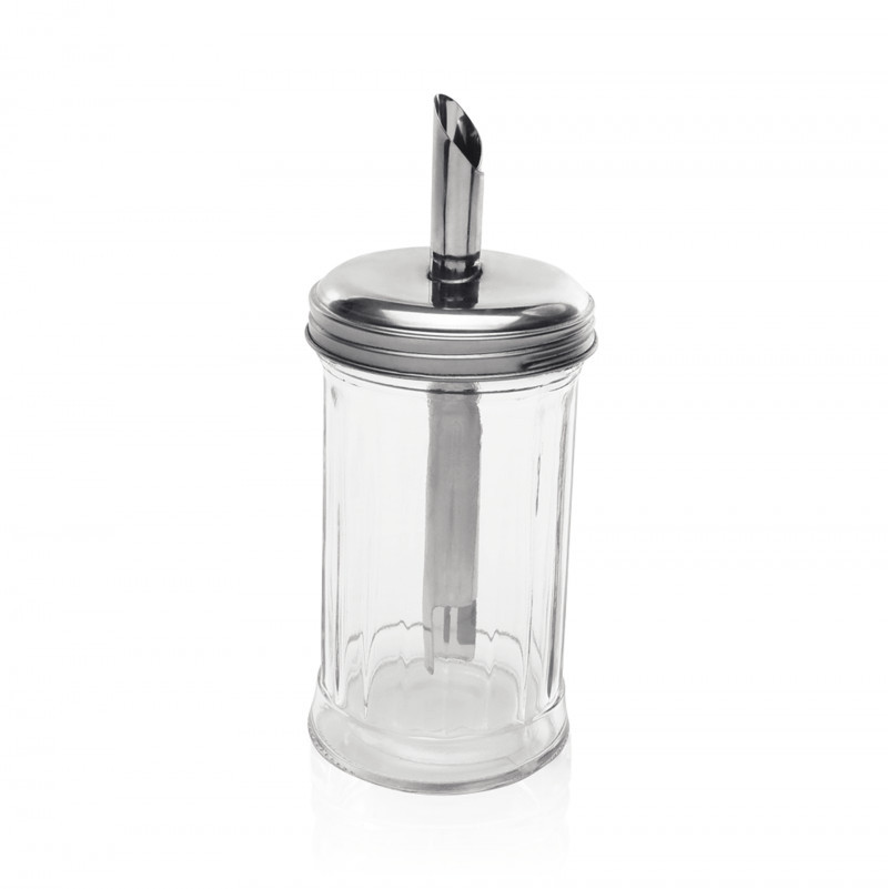 A cukorszóró 300 ml-es űrtartalommal rendelkezik, amely elegendő mennyiségű cukrot vagy más por állagú anyagot képes tárolni. Az üvegből készült tartály esztétikus megjelenést kölcsönöz a terméknek, és lehetővé teszi a tartalom könnyű megfigyelését. A bólintós kialakításnak köszönhetően a szórófej egyszerűen használható, így a cukor vagy más por állagú anyag egyenletesen szóródik ki.