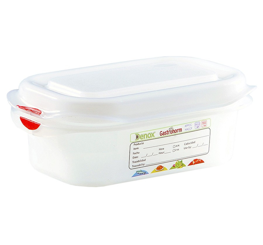 A Denox GN edény a professzionális konyhák egyik alapdarabja. Az 1/9-es GN méret 65 mm-es mélységgel és 0,6 literes űrtartalommal kiválóan alkalmas kisebb adagok, szószok, dresszingek vagy alapanyagok tárolására. A mellékelt légmentesen záró fedő megőrzi az ételek frissességét és megakadályozza a kiömlést.