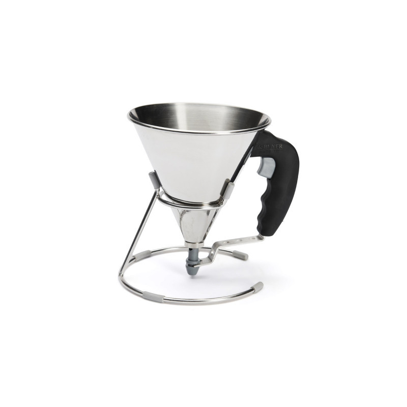 A De Buyer 0,8 literes rozsdamentes Díszítő tölcsér állvánnyal tökéletes választás folyékony és forró (max. 80°C) készítmények pontos adagolására, mint például szószok, likőrök és desszertek. Az ergonomikus kialakítású fogantyú és a pisztolyos mechanizmus lehetővé teszi a könnyű használatot és az egy ujjal történő adagolást. A tölcsér indéformálható és tartós, mosogatógépben tisztítható. Az állvány stabil tartást biztosít, így a tölcsér könnyen tölthető és tárolható.Felhasználási lehetőségek: Adagolás: Pontos adagolás szószokhoz, likőrökhöz és desszertekhez. Díszítés: Különféle készítmények díszítése. Professzionális használat: Éttermekben és cukrászdákban ideális.
