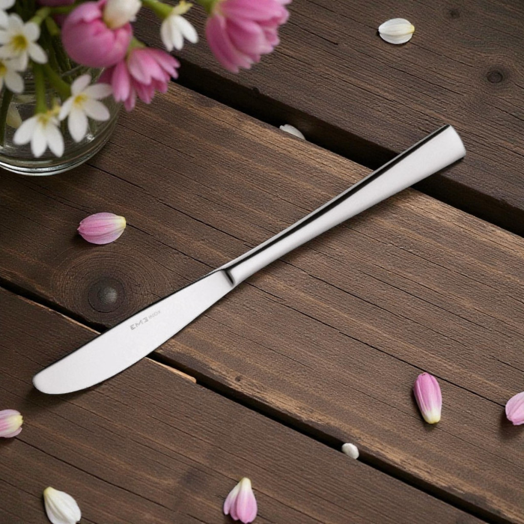 A Doram evőkés az olasz EME márka egyik ikonikus darabja, amely 2,5 mm vastag, 18/10-es rozsdamentes acélból készült. A penge kialakítása lehetővé teszi a húsok, zöldségek és egyéb ételek precíz vágását, így nemcsak esztétikus, hanem rendkívül funkcionális is.