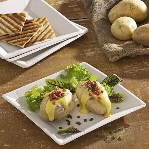 Remek választás partikra, piknikhez, irodai eseményekhez vagy vendéglátóhelyekre. Mérete ideális süteményekhez, előételekhez vagy kisebb adag főfogásokhoz. A fehér szín letisztult, bármilyen környezetbe illeszkedik.