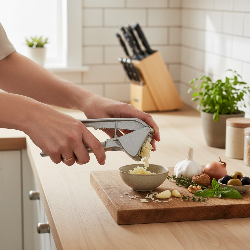 Erős Fokhagymanyomó, 16 cm, Alumínium, Több Funkciós (Oliva Bogyó Magozó, Diótörő)Ez az erős alumínium fokhagymanyomó kiváló választás mindazok számára, akik sokoldalú eszközt keresnek a konyhájukba. A 16 cm-es méret és az ergonomikus kialakítás kényelmes fogást biztosít, miközben a strapabíró alumínium szerkezet garantálja a hosszú élettartamot. A fokhagymanyomó funkció mellett az eszköz olíva bogyó magozására és diótörésre is alkalmas, így több konyhai feladatot is elvégezhetsz vele egyetlen eszközzel.Miért jó ez az eszköz: Többfunkciós: Fokhagymanyomó, olíva bogyó magozó és diótörő egyben. Anyag: Strapabíró alumínium szerkezet a hosszú élettartamért. Kialakítás: Ergonomikus fogantyú a kényelmes használat érdekében.Felhasználási javaslatok: Konyhai használat: Ideális eszköz fokhagyma aprítására és egyéb konyhai feladatokra. Professzionális konyhák: Sokoldalú megoldás professzionális szakácsok számára. Otthoni használat: Praktikus kiegészítő, amely megkönnyíti a mindennapi konyhai munkát.Karbantartási tippek: Tisztítás: Mosogatógépben mosható, de kézi tisztítással is egyszerűen karbantartható. Tárolás: Száraz helyen tárolja, hogy megőrizze az alumínium tartósságát és megjelenését.Keresőcímkék: Erős fokhagymanyomó, alumínium konyhai eszköz, olíva bogyó magozó, diótörő, többfunkciós konyhai eszköz