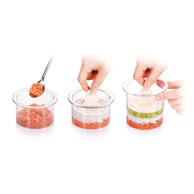 Az ételformázó henger egy praktikus konyhai eszköz, amely segít a kreatív és professzionális ételek elkészítésében. A Presto FoodStyle ételformázó henger készlet három különböző méretű hengert tartalmaz, amelyek lehetővé teszik az ételek gyors és egyszerű formázását.A hengerek kiváló minőségű, tartós műanyagból készülnek, amelyek könnyen tisztíthatók és higiénikusak. A készletben található hengerek méretei különbözőek, így lehetőséget adnak a különböző méretű és formájú ételek elkészítésére. A kisebb méretű henger ideális például a desszertek vagy az előételek formázásához, míg a nagyobb méretű henger alkalmasabb lehet a főételek vagy a saláták formázására.Az ételformázó henger használata rendkívül egyszerű. Csak helyezze az ételt a hengerbe, majd nyomja le a tetejét, hogy a forma kialakuljon. A henger alján található kis lyukak segítségével könnyedén eltávolíthatja az ételt a formából anélkül, hogy megsértené vagy összetörné azt.A Presto FoodStyle ételformázó henger készlet sokoldalúan használható. Nemcsak otthoni konyhákban, hanem éttermekben, cukrászdákban vagy bármilyen gasztronómiai vállalkozásban is ideális választás lehet. Az ételformázó henger segítségével könnyedén elkészíthetők lenyűgözően szép és professzionális kinézetű ételek, amelyek garantáltan elvarázsolják a vendégeket.A Presto FoodStyle ételformázó henger készlet egy stílusos és praktikus kiegészítő a konyhában. A kompakt méretének köszönhetően könnyen tárolható, így nem foglal sok helyet a konyhapulton vagy a fiókokban. A készlet könnyen tisztítható, akár kézzel, akár mosogatógépben is.Ha szeretné feldobni az ételek megjelenését és kreatívabbá tenni a konyhai tevékenységeket, akkor a Presto FoodStyle ételformázó henger készlet tökéletes választás lehet. Próbálja ki Ön is, és varázsoljon lenyűgöző ételeket az asztalra!