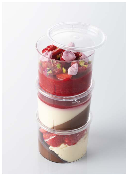 - Átlátszó design: a desszert rétegei mindig láthatóak.